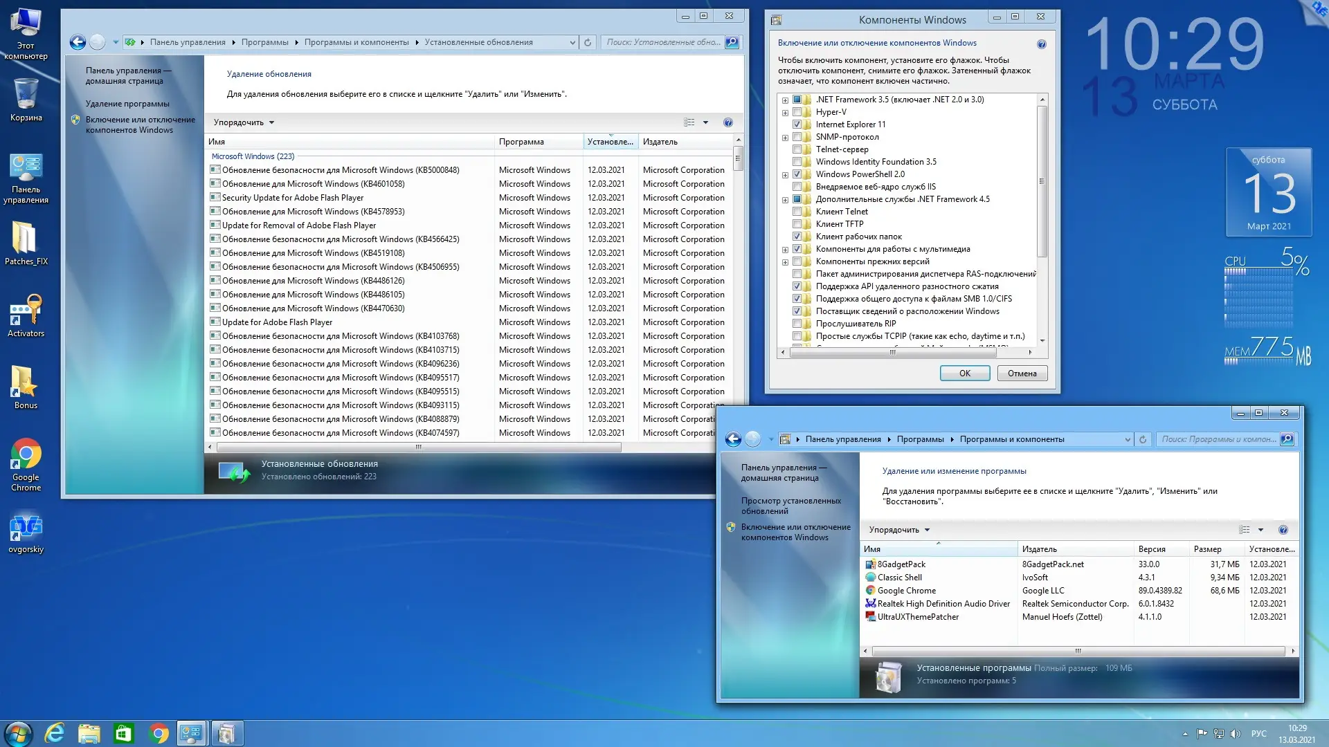 - Обновленная и безопасная система с последними патчами от марта 2021 года.