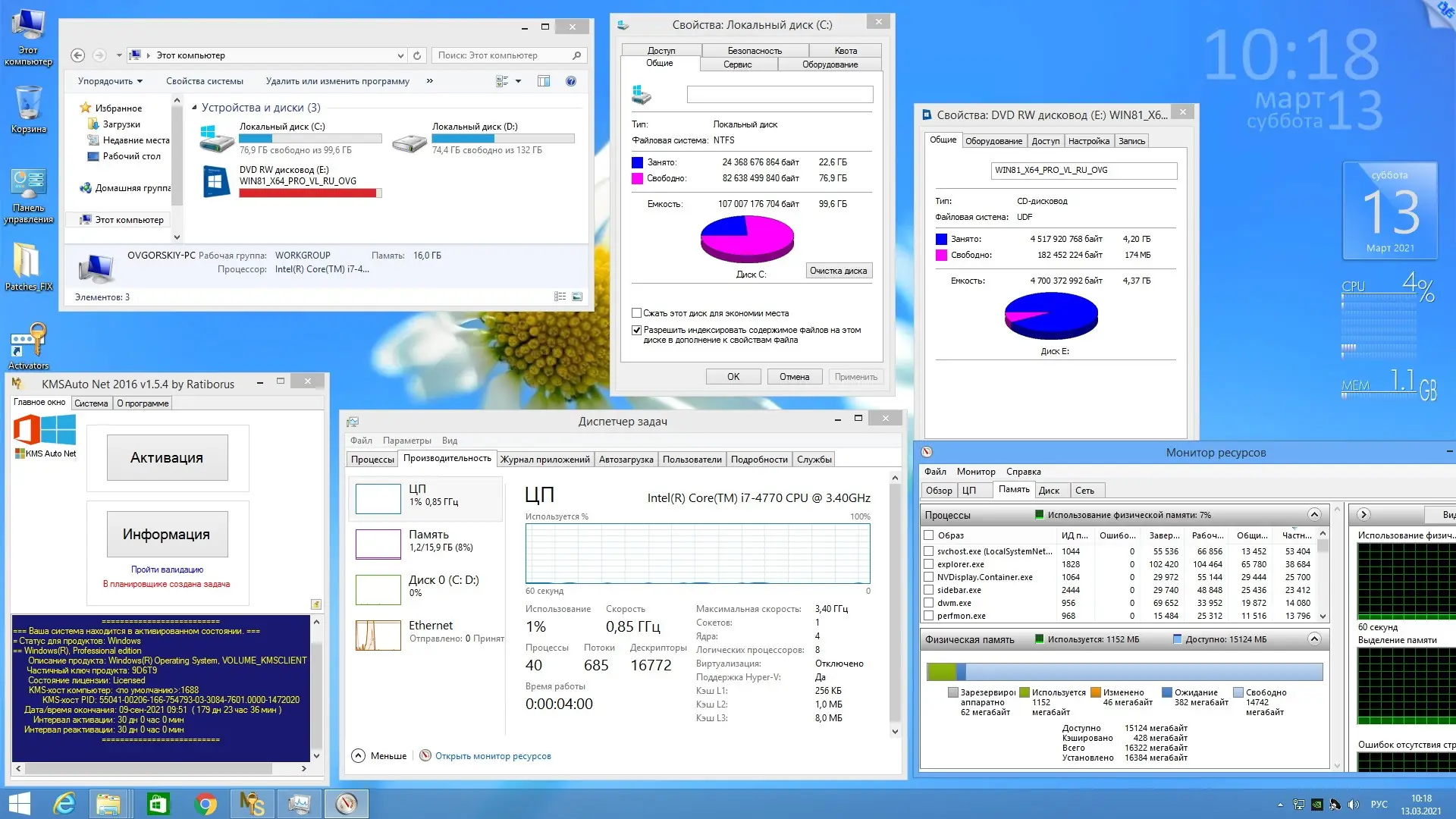 - Возможность быстрого активации системы с помощью проверенных активаторов, встроенных в образ.