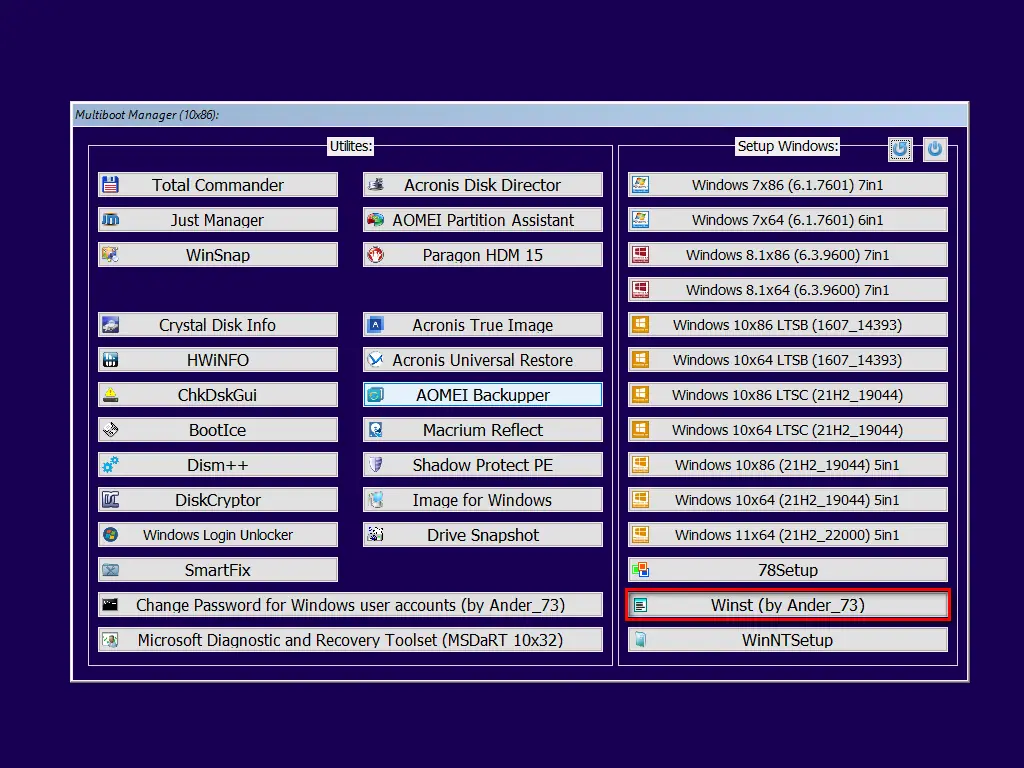 Multiboot Collection обладает рядом преимуществ, делающих его удобным и универсальным инструментом для тех, кто занимается системным администрированием или предпочитает самостоятельное восстановление системы. Комплект включает свежие обновления Windows, расширенную поддержку UEFI, а также возможность обновлять отдельные компоненты без нарушения целого сборника.