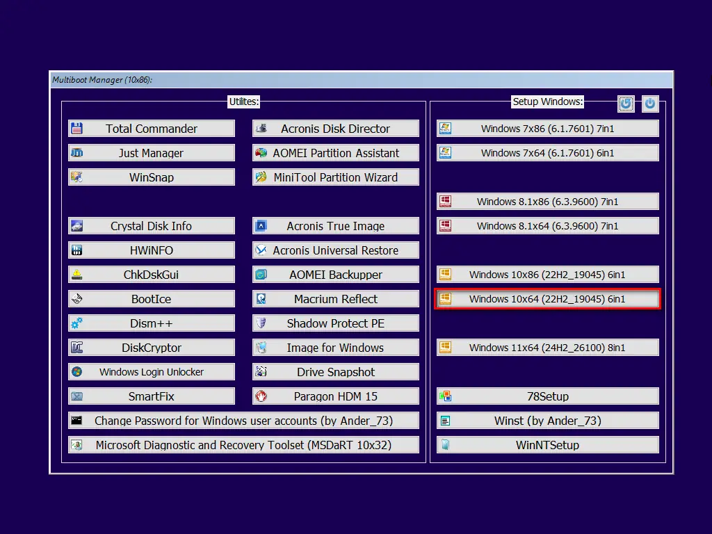 Multiboot Collection — это мощное, универсальное и постоянно обновляемое решение для мультизагрузки Windows и утилит. Оно сочетает в себе богатый функционал, простоту настройки и поддержку различных режимов работы.