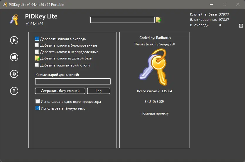 Она позволяет создавать надежную SQL-базу данных, что значительно повышает эффективность поиска, обновления и блокировки ключей по сравнению с предыдущими версиями, использовавшими текстовые файлы. Кроме того, программа обеспечивает добавление новых ключей в два режима, их проверку, обновление информации и перемещение в блокированные списки при необходимости.