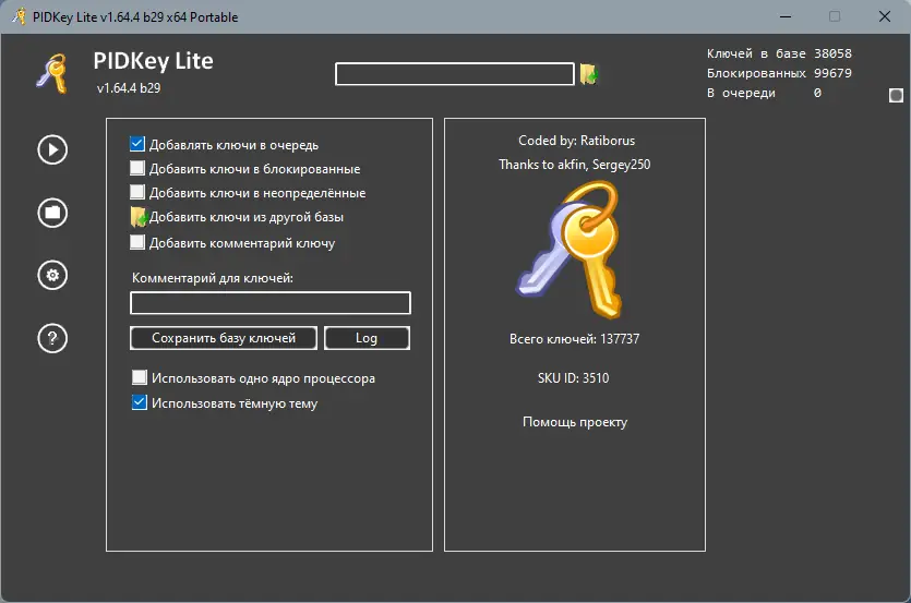 Программа является правопреемницей PIDKey, вобрав в себя лучшие идеи исходных решений и значительно расширив функциональность. Она позволяет заменять сторонние инструменты, такие как Ratiborus, Ultimate PID Checker или VAMT, обеспечивая единое удобное решение для работы с ключами.
