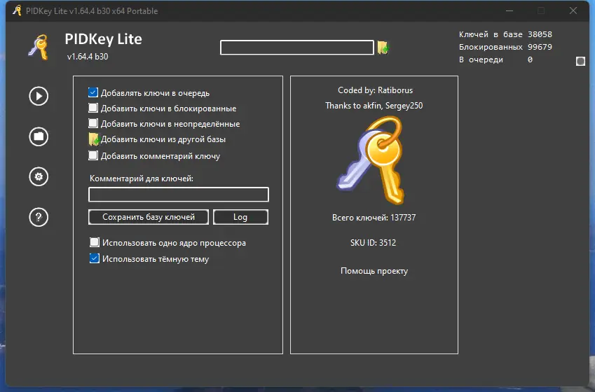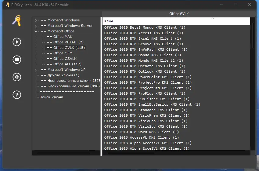 PIDKey Lite предназначена для просмотра, обновления и сохранения информации о ключах для продуктов Microsoft. Это удобный инструмент, позволяющий управлять лицензиями, создавать и редактировать базу данных ключей в виде SQL, а также проверять их статус и блокировать при необходимости.