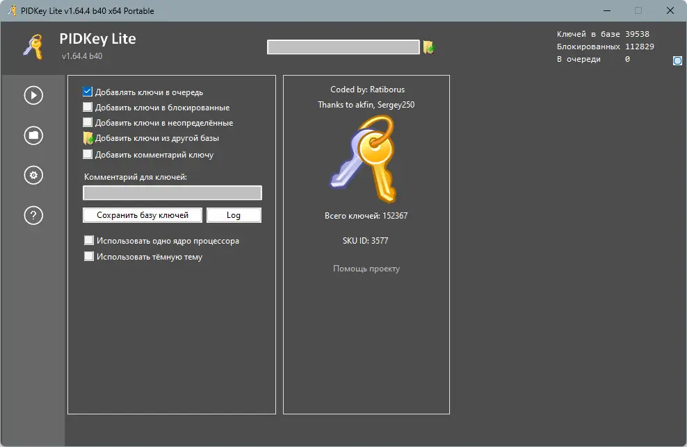 Она позволяет заменить PIDKey by Ratiborus, Ultimate PID Checker by janek2012 и VAMT. Основной особенностью программы является создание SQL-базы вместо текстовых файлов, что обеспечивает более надежное хранение данных. Пользователи могут добавлять новые ключи в двух режимах, проверять их наличие в базе, обновлять информацию и перемещать в блокированные. Для обновления базы предусмотрены команды распаковки конфигураций и подключения собственной базы данных. Также реализована возможность перехода на новую версию программы с сохранением базы, что ускоряет обновление и поддержку актуальности данных.