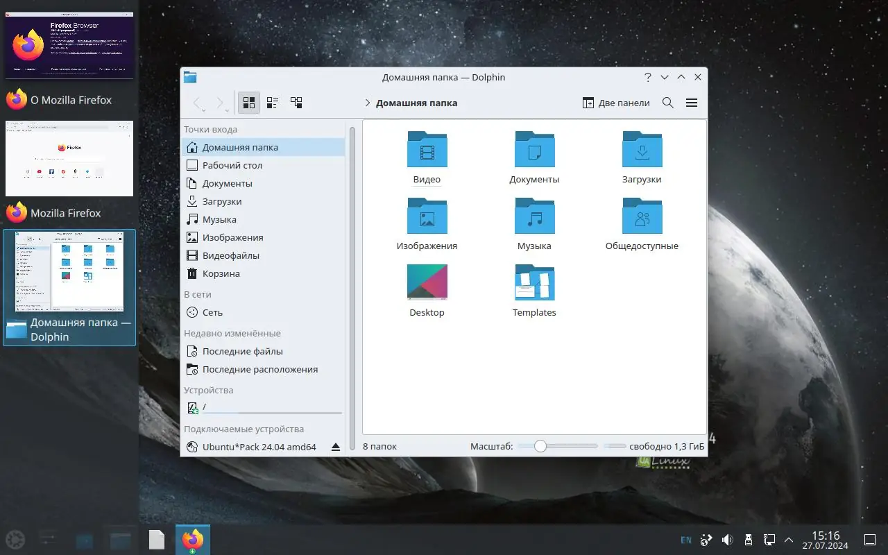 Предназначен для быстрого и удобного развертывания системы без необходимости сложной настройки. Включает все необходимые пользовательские приложения, такие как офисные программы, мультимедиа, графические редакторы и сетевые инструменты. Дистрибутив создан на базе Ubuntu 24.04 LTS и включает поддержку русского, украинского и английского языков. Интерфейс KDE, выполненный в стиле Windows, позволяет пользователям легко ориентироваться и управлять системой. Благодаря наличию дополнительных репозиториев и предустановленных драйверов, система обеспечивает поддержку широкого спектра оборудования, мультимедийных форматов и сетевых протоколов. Также присутствуют утилиты для резервирования, восстановления данных, шифрования и VPN, что делает её универсальной для дома и офиса.