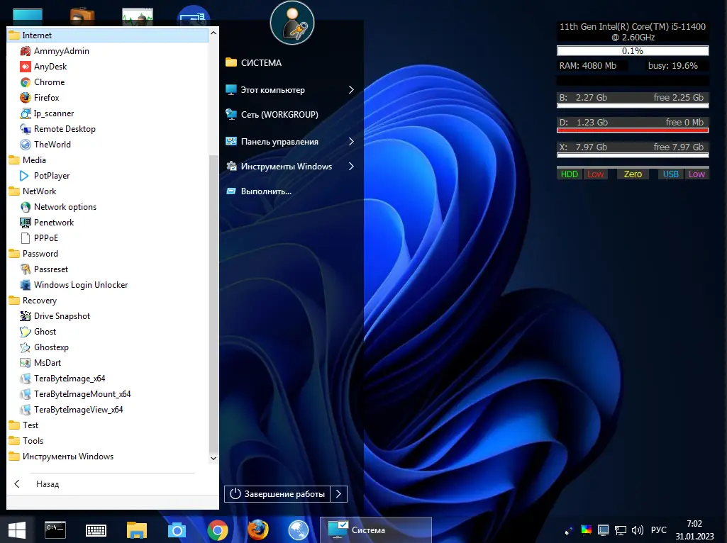 - Поддержка Windows 10/11 PE с возможностью работы на x32 и x64 Bit