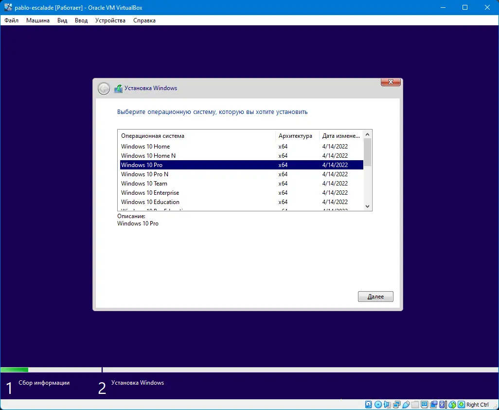 - Запустите установку системы, выбрав нужный язык и редакцию.