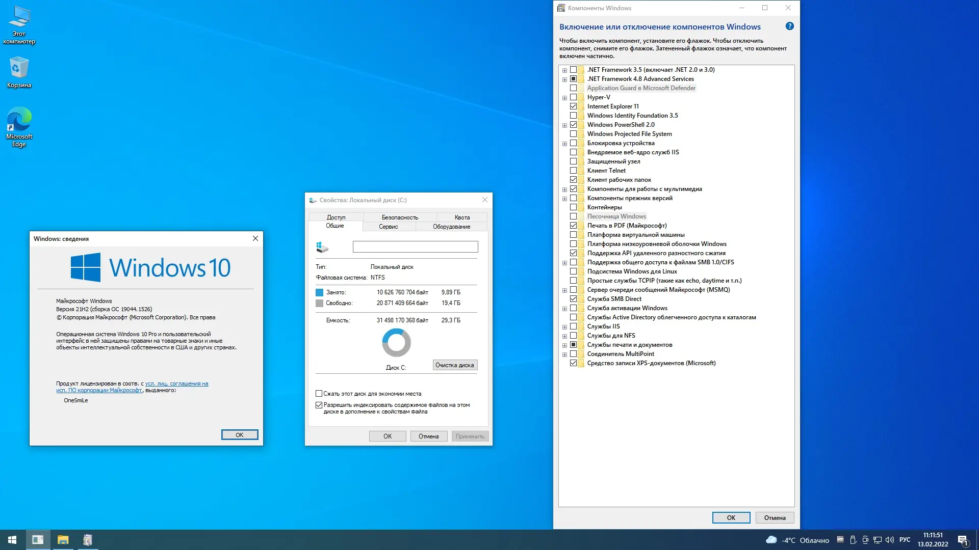 Представленная версия Windows создана на основе оригинальных образов системы. В комплект входит три варианта: PRO x64 Rus, Enterprise x64 Rus и Enterprise LTSC x64 Rus, все с обновлениями по январь 2022 года. Образ системы тщательно очищен от ненужных модерн-приложений, кроме Edge, Магазина и Калькулятора, что увеличивает скорость работы и повышает безопасность. В системе отключена телеметрия, а поиск работает скрытно для минимизации отвлекающих факторов. Благодаря использованию DISM, образ очищен от резервных копий и ненужных компонентов, что уменьшает размер и повышает стабильность системы. Дополнительно, Windows-Defender по умолчанию выключен, но с возможностью быстро включить его через контекстное меню. Внутри образа реализована автоактивация, что обеспечивает быструю и легкую активацию без необходимости введения ключа вручную.