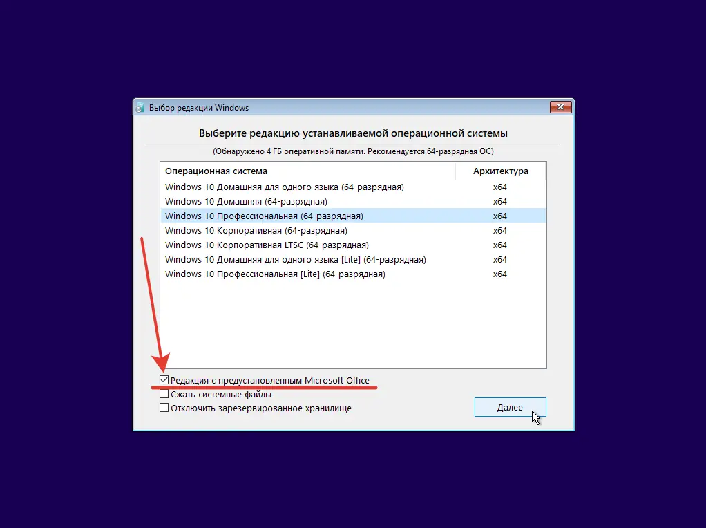 - На этапе настройки выберите нужную редакцию Windows и дополнительные параметры установки, такие как язык интерфейса, имя пользователя, рабочая группа и часовой пояс.