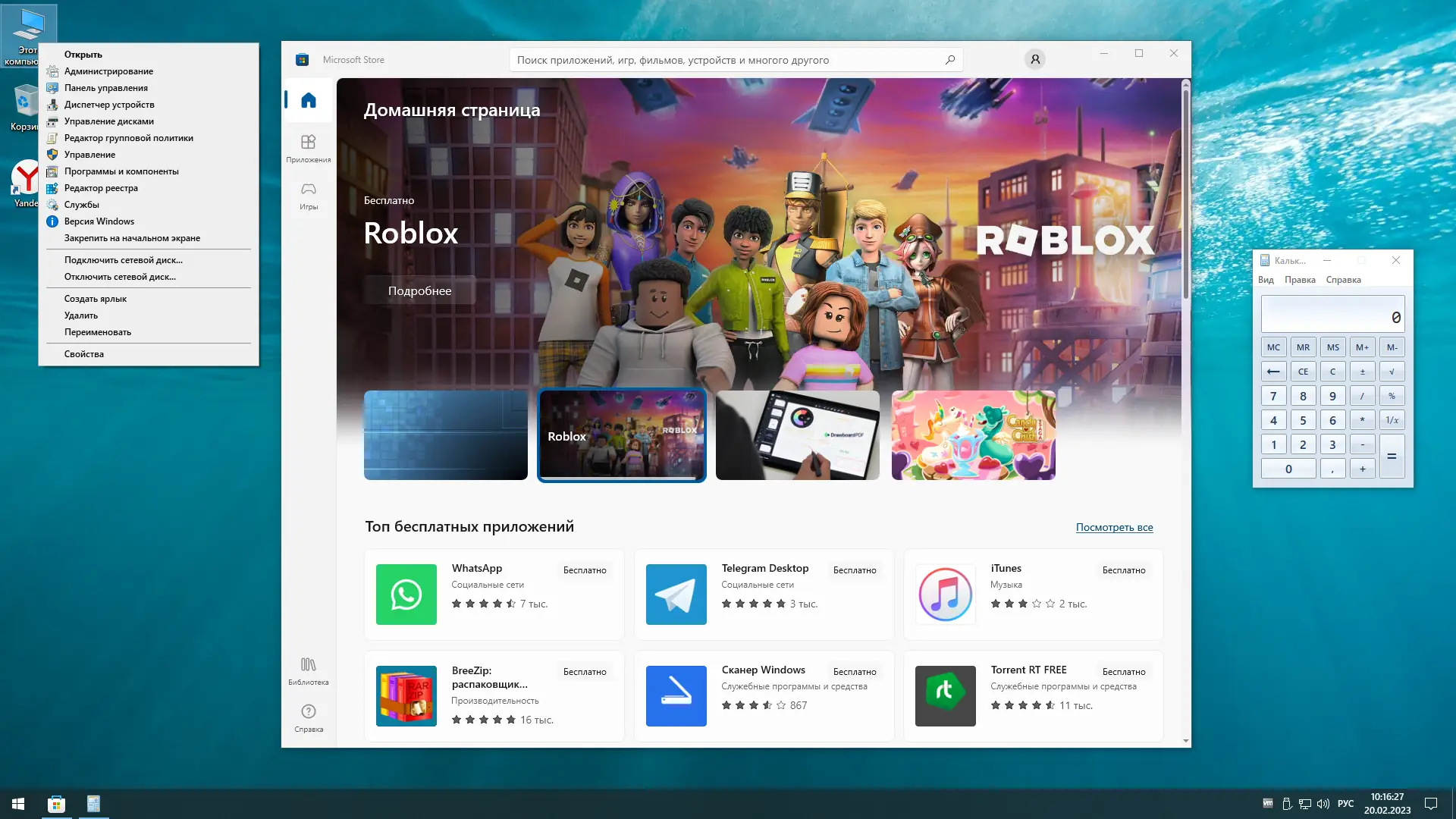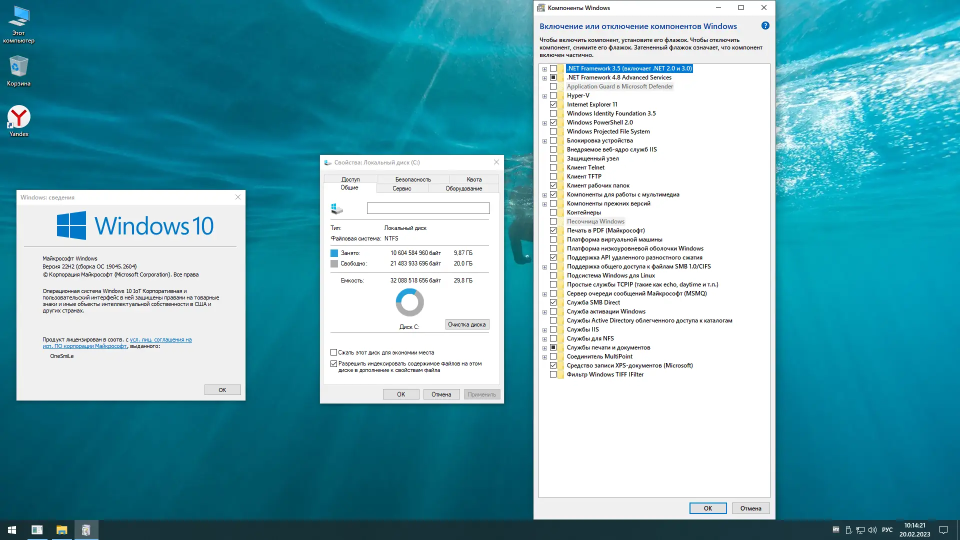 Образ системы включает четыре редакции: Windows 10 Home, Pro, IoT Enterprise и LTSC, что позволяет выбрать наиболее подходящий вариант под ваши нужды. В системе установлены популярные программы, такие как 7-Zip и Яндекс.Облако, а установка магазина приложений и Xbox происходит автоматически через PowerShell с помощью команды wsreset -i после подключения интернета.