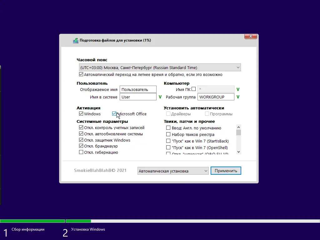 - Автоматическая активация Windows и Office при наличии подходящих ключей