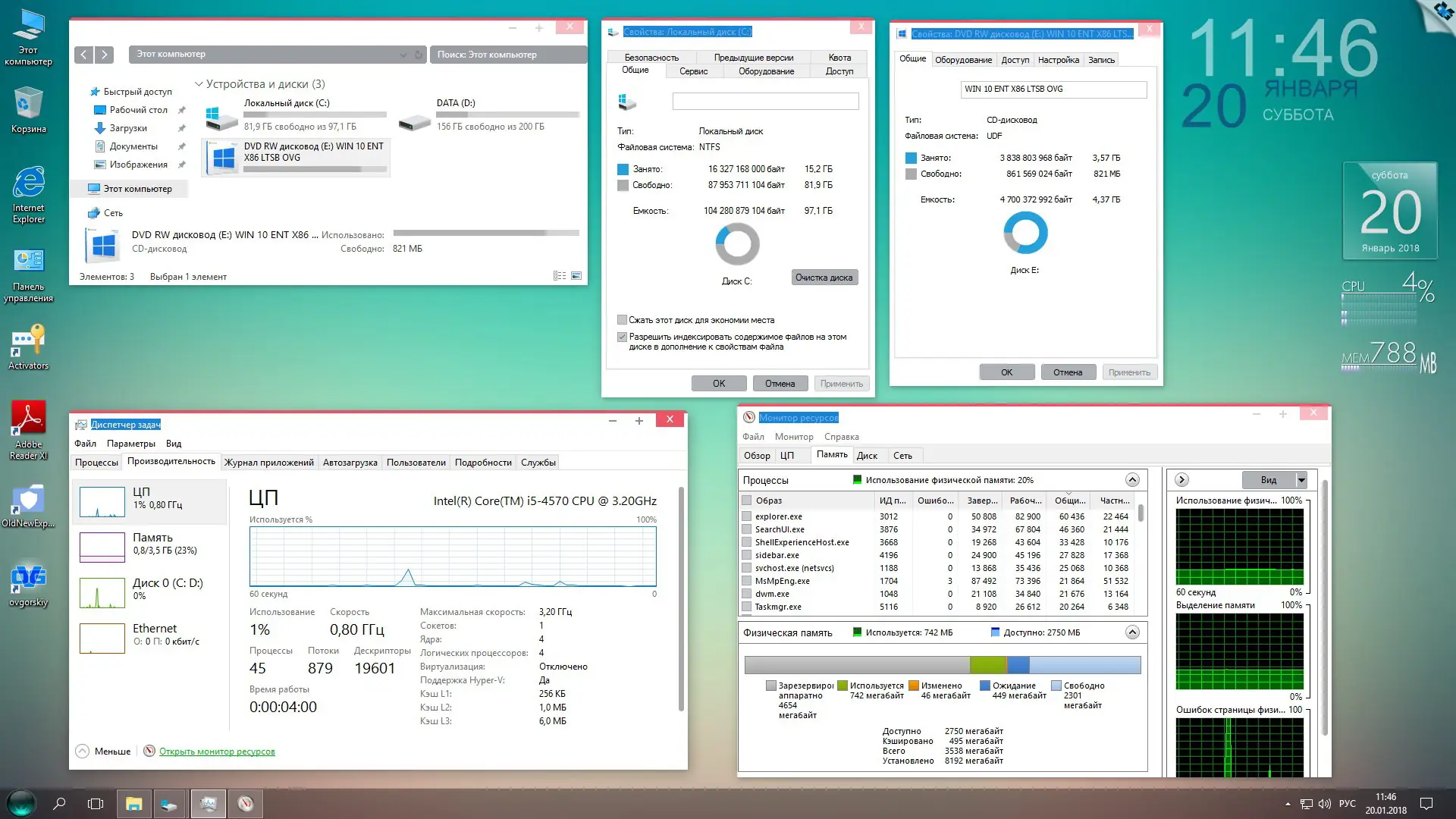 - Отсутствие стандартных приложений Windows Store, браузера Edge и Cortana, что ускоряет работу системы.