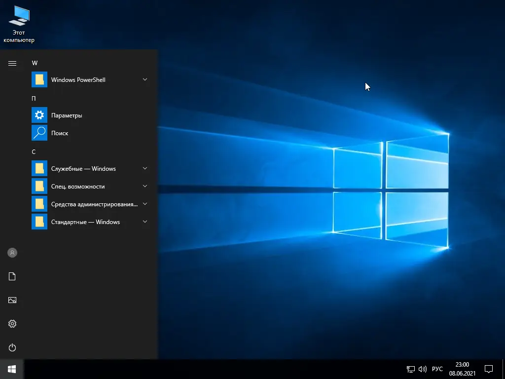 - Удалены защитник Windows, SmartScreen, телеметрия для повышения приватности и скорости работы