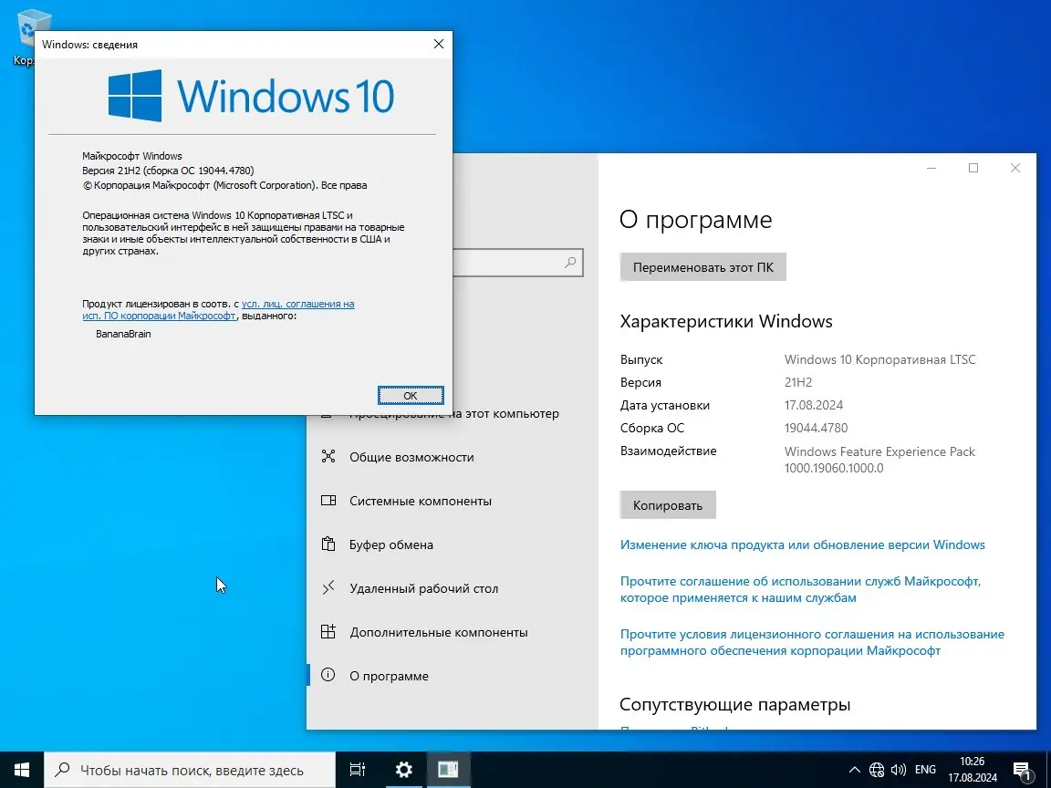 Модель системы включает обновления, актуальные на август 2024 года, и предназначена для установки на 64-битные архитектуры (x64). Она специализируется на корпоративных задачах, обеспечивая максимально стабильную работу и длительный цикл поддержки. Вариант Windows 10 Enterprise LTSC 2021 оптимален для использования в организациях, где важна долговременная стабильность и отсутствие автоматических обновлений, влияющих на работу системы.