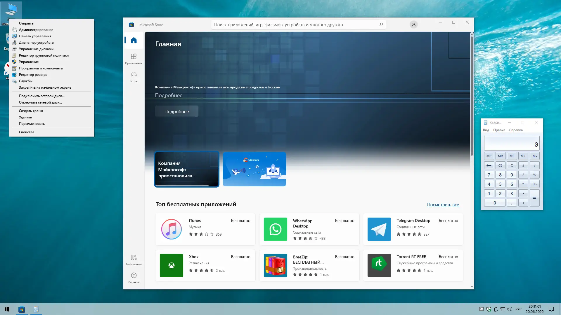 - Предварительно установлены основные утилиты, такие как 7-Zip и Яндекс.Браузер.