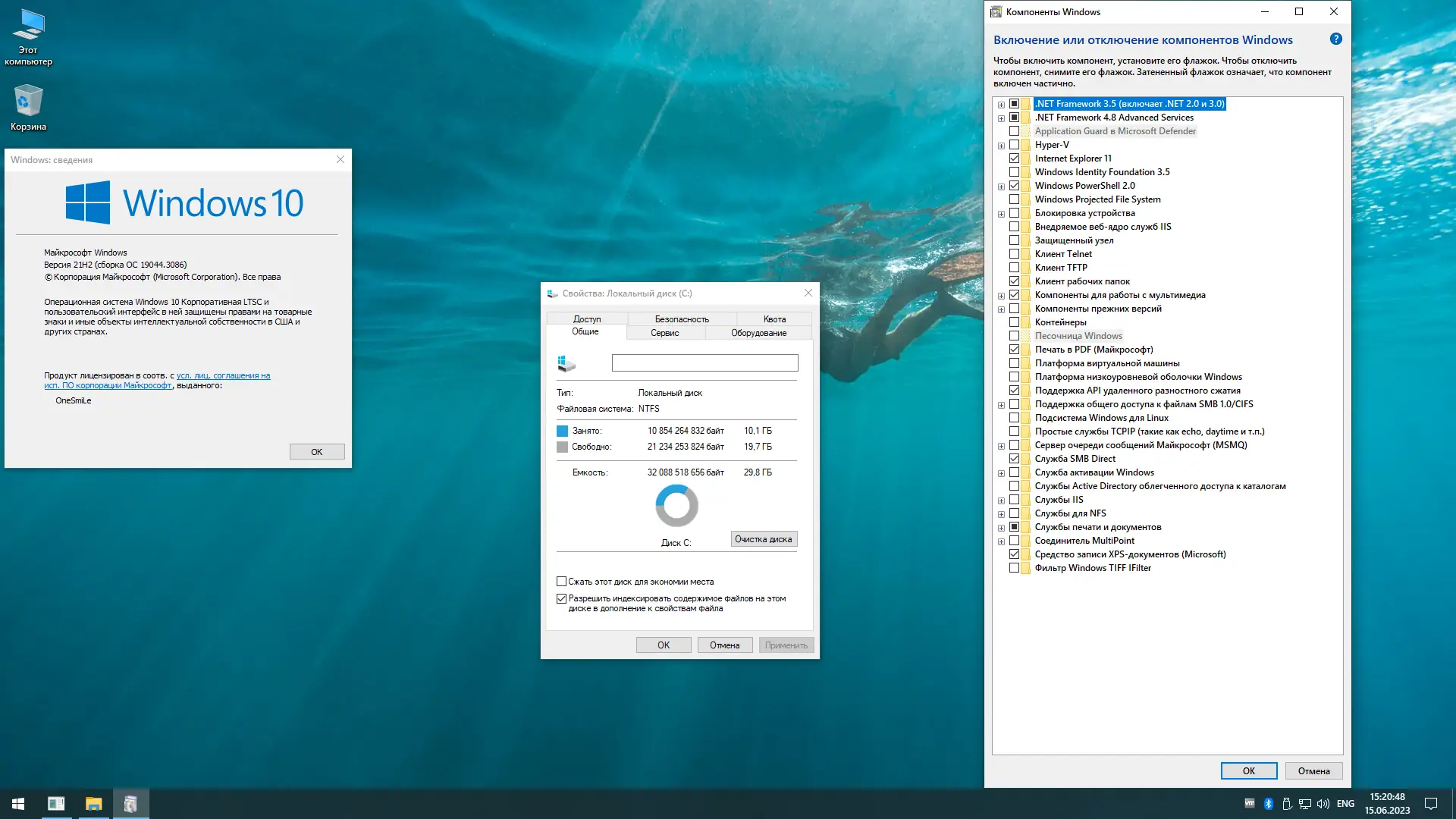 Данная версия Windows 10 Enterprise LTSC основана на оригинальном образе системы и включает только необходимые компоненты для повышения производительности и стабильности. В образе применены твики для отключения ненужных служб и функций: удалены Edge, Cortana, DataCenterBridging, QuickAssist, а также отключены телеметрия и синхронизация. Работа ведется через инструмент DISM, а образ упакован в формат esd. В Windows Defender по умолчанию выключен, его можно легко активировать или деактивировать через меню пуск. В сборке отсутствуют предустановленные обновления и встроенные сервисы, что делает систему более быстрой и безопасной.