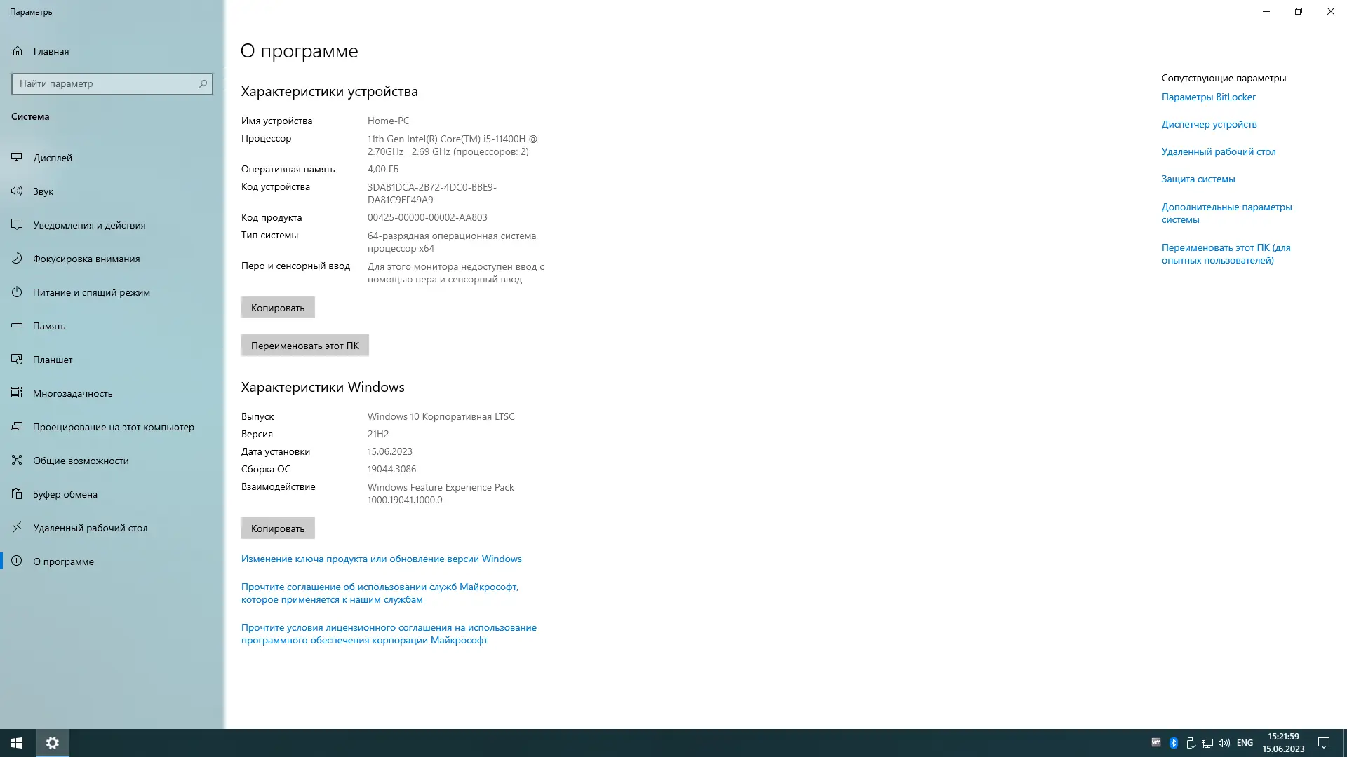 Минимальные системные параметры для комфортной работы сборки Windows 10 Enterprise LTSC: