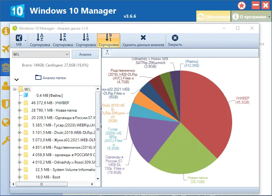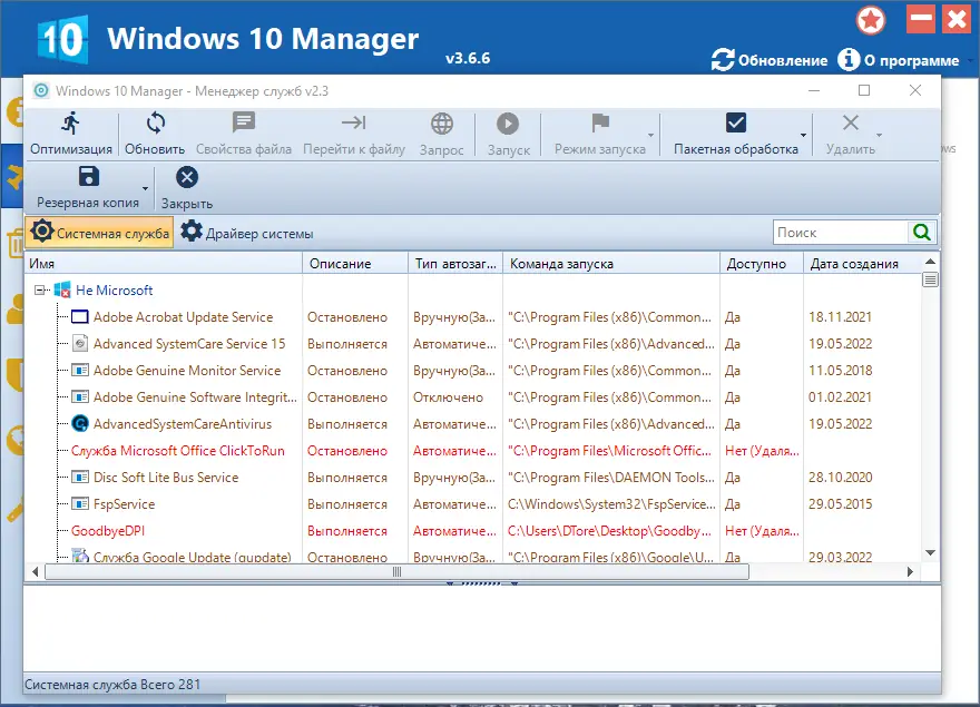 «Windows 10 Manager» — универсальный набор инструментов для оптимизации и настройки операционной системы Microsoft Windows 10. Данная утилита включает более сорока различных функций, предназначенных для ускорения работы системы, устранения неисправностей, повышения её стабильности и безопасности, а также для персонализации внешнего вида и параметров системы. Благодаря простоте использования и широкому функционалу, программа подходит как для опытных пользователей, так и для новичков, стремящихся максимально эффективно управлять своей системой.