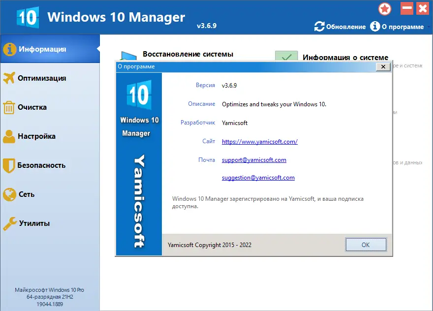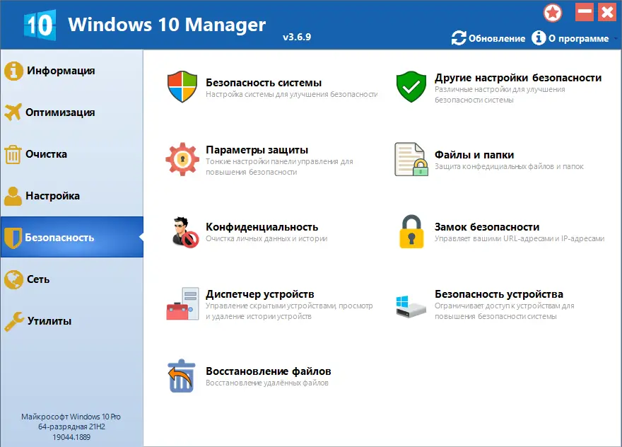 Windows 10 Manager — универсальная утилита для оптимизации, настройки, очистки и восстановления операционной системы Windows 10. В составе более сорока различных инструментов, помогающих повысить производительность, устранить неисправности, сделать систему более стабильной и безопасной, а также персонализировать внешний вид и параметры. Эта программа предназначена для пользователей, желающих максимально эффективно управлять своей системой и удовлетворить все свои потребности в области настройки и обслуживания Windows 10.