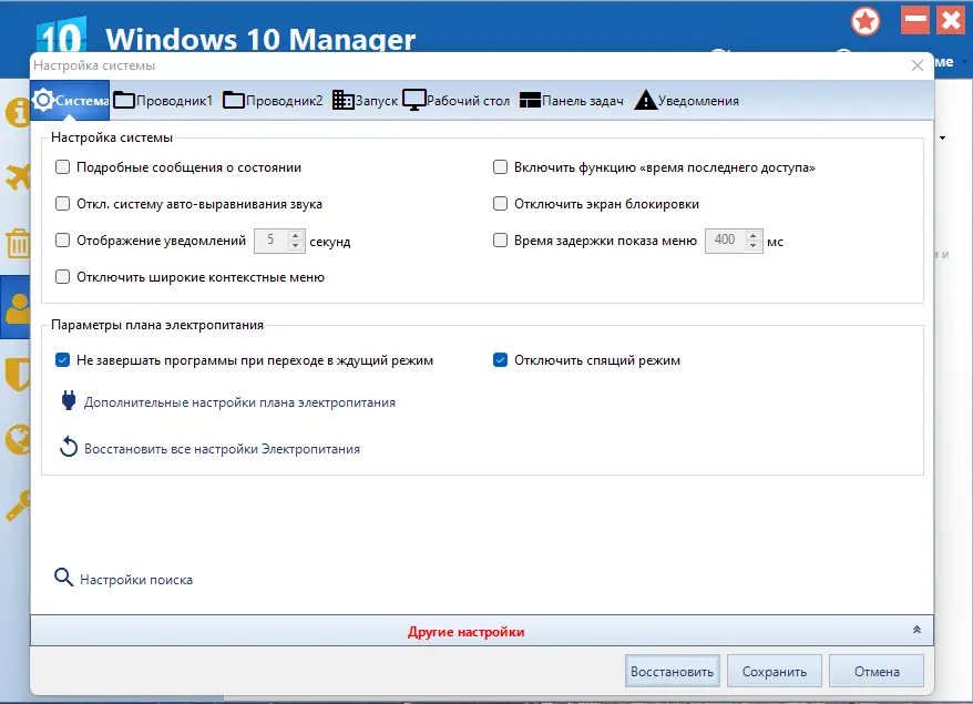 Windows 10 Manager — универсальная утилита все в одном для Microsoft Windows 10, включающая более сорока инструментов, предназначенных для оптимизации, настройки, очистки, ускорения и восстановления системы. Она помогает сделать вашу Windows 10 быстрее и стабильнее, устраняет неисправности, повышает безопасность и позволяет персонализировать интерфейс. Благодаря своей функциональности программа способна удовлетворить самые разнообразные потребности пользователей, как начинающих, так и опытных.