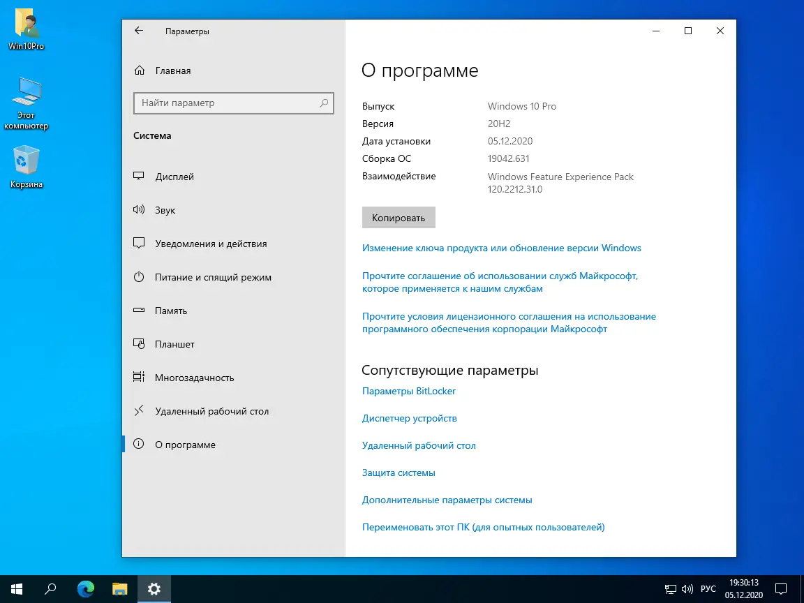 Данная сборка основана на официальном оригинальном образе Windows 10 Pro бизнес-редакции 20H2 на русском языке для комфортного и приватного использования. В образе отключены нежелательные службы, телеметрия, рекламные модули и все, что может повлиять на конфиденциальность пользователя. В остальном система сохраняет необходимые функции, а настройка реализована для обеспечения высокой стабильности и безопасности.