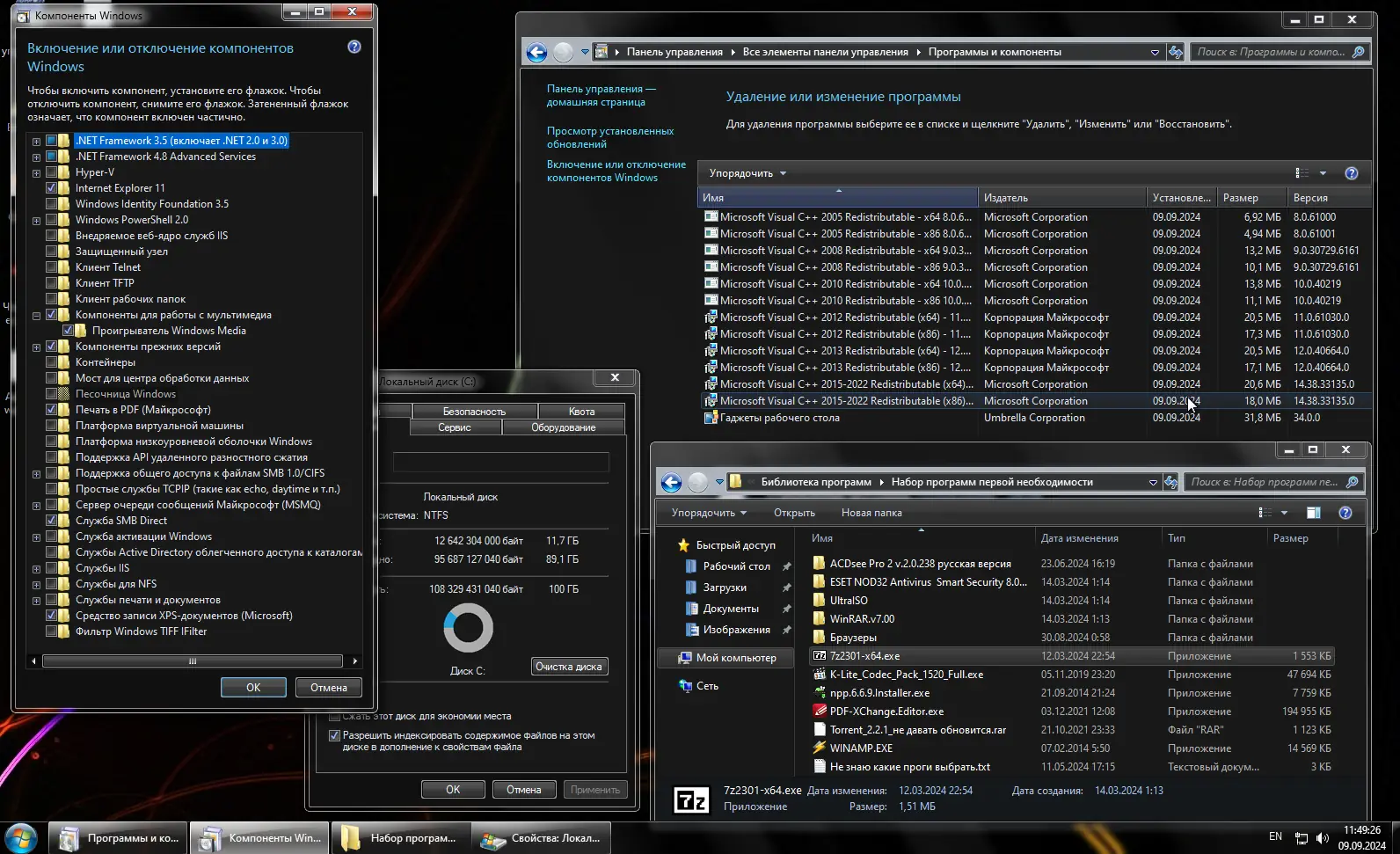 Дополнительно, в сборке реализована расширенная панель контекстных меню, улучшенное управление системой и наличие специализированных программ для диагностики и обслуживания оборудования. Все установленные UWP-приложения, такие как Microsoft Store, Почта, Калькулятор, и привычные старые версии, полностью отключены или заменены на аналогичные из Windows 7, чтобы повысить стабильность и упростить взаимодействие. В сборке полностью исключены службы слежки, онлайн-сервисы и реклама, что делает ее максимально чистой и безопасной для работы и развлечений.