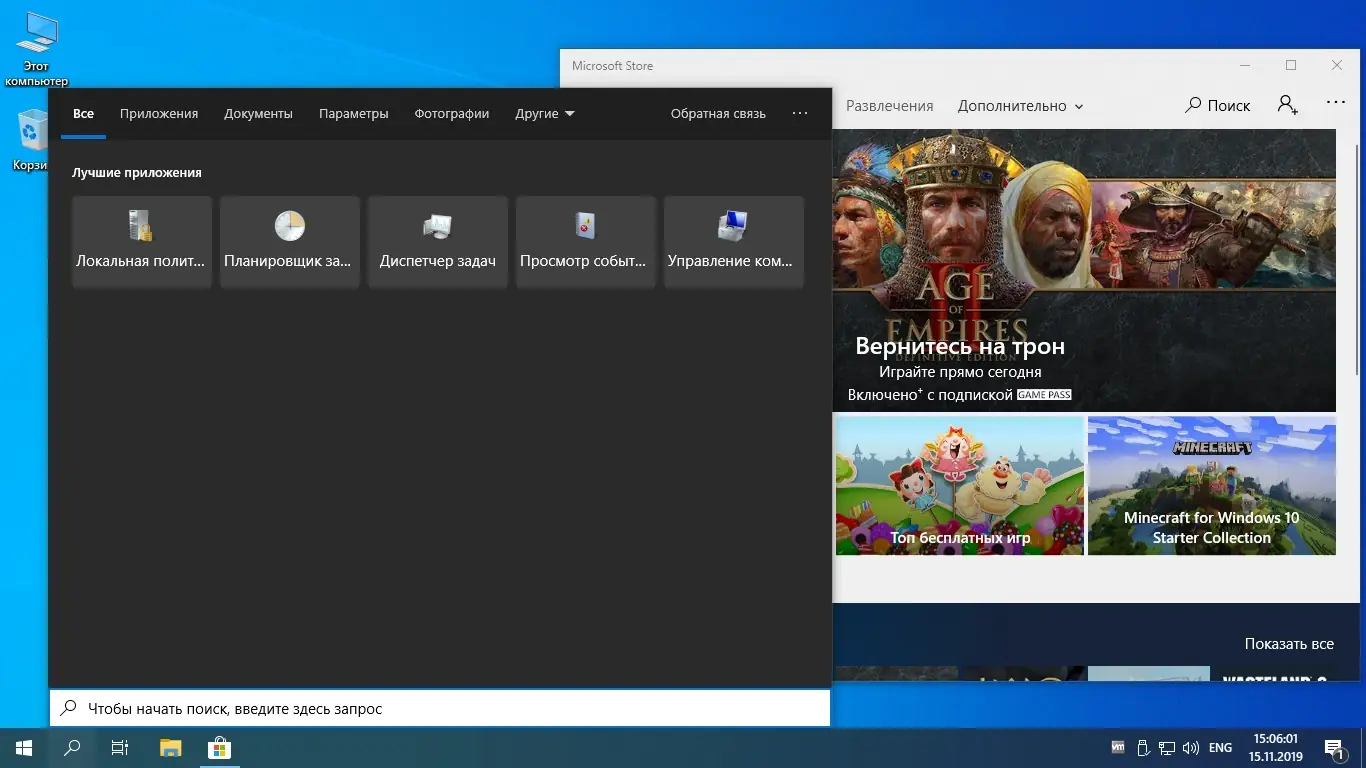 - Интегрированные обновления по состоянию на 15.11.19, исключая модерн-приложения кроме магазина и поиска.
