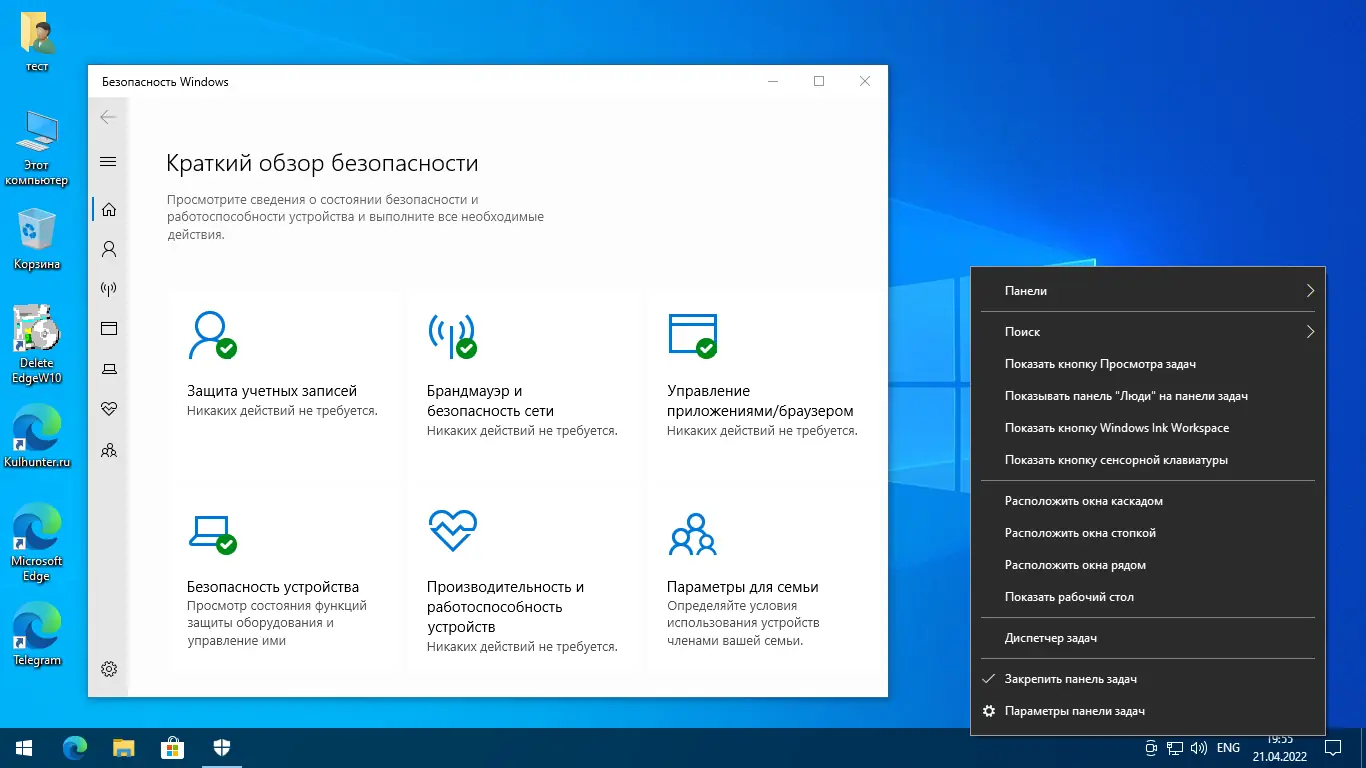 - Повышение безопасности через отключение SmartScreen, Центра уведомлений и автоматических обновлений.