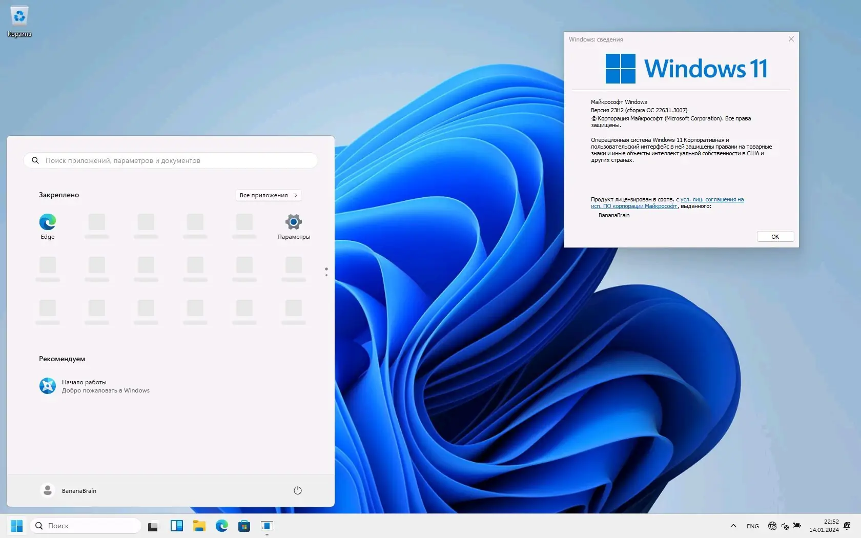 Данная версия системы Windows собрана на базе оригинального образа MSDN и включает все актуальные обновления по состоянию на 14 января 2024 года. В сборку не вырезано ничего, что гарантирует полноценную работу системы с максимумом возможностей. В процессе инсталляции можно создать локальную учетную запись, а также отключить проверки на железо, что делает настройку более гибкой и удобной для различных целей использования.