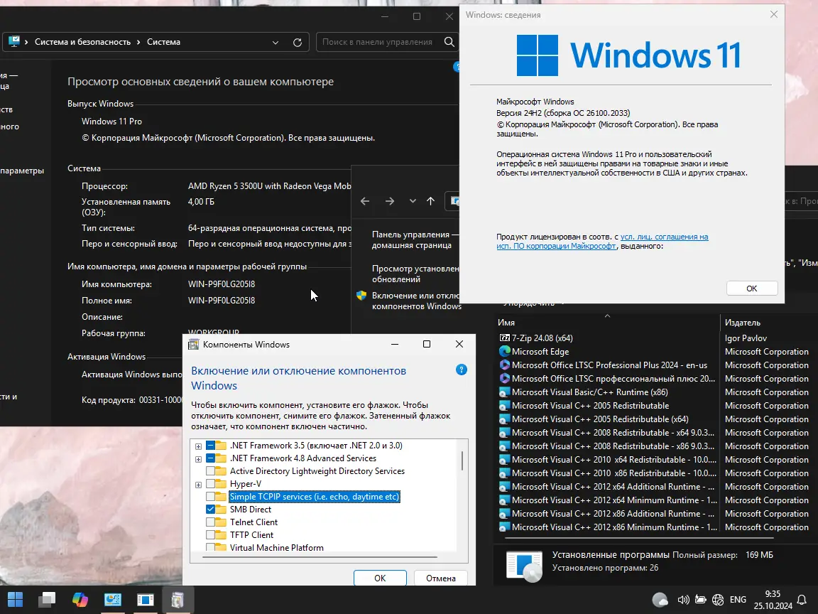 Это комплект из 5 редакций Windows 11 (русские и английские) с обновлениями по октябрь 2024, включающий как стандартные версии, так и с встроенным MS Office LTSC 2024 Pro Plus. Образы основаны на оригинальном русском дистрибутиве и дополнены системными библиотеками, что обеспечивает стабильную работу и расширенные возможности. В сборке присутствуют обновления, интеграции и исправления, а также подготовленные к работе с актуальными технологиями, поддержкой UEFI/GPT и отключенными требованиями TPM 2.0.