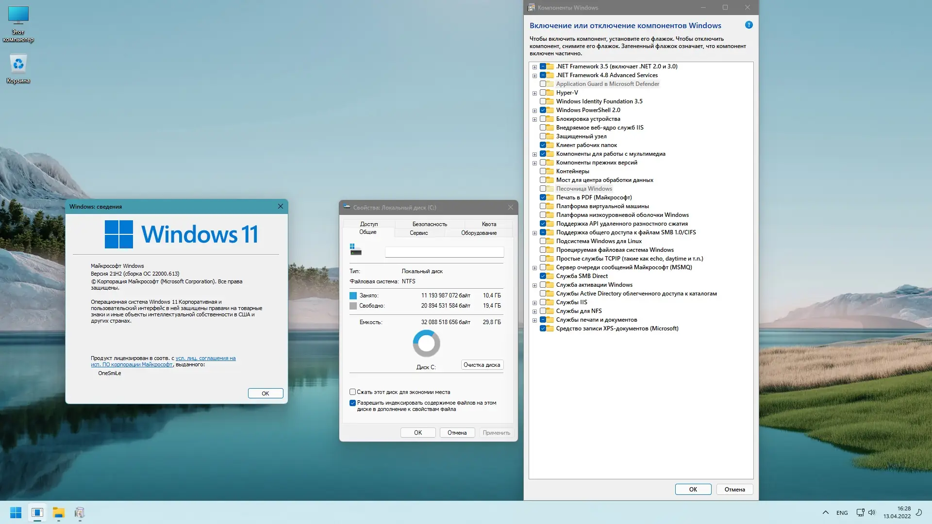 Дополнительные возможности включают включение Windows Defender с расширенными настройками, изменение расположения меню Пуск, отключение ненужных служб и удаление ненужных компонентов, таких как Edge, Hello-Face, OneDrive и другие. В результате получается максимально оптимизированная и безопасная система, готовая к использованию на современном оборудовании.