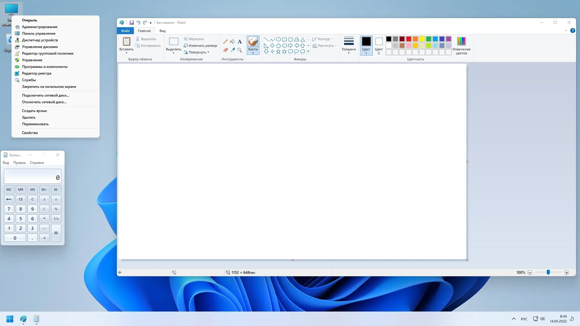- Предварительная настройка с включенным Windows Defender и классическим меню Пуск.