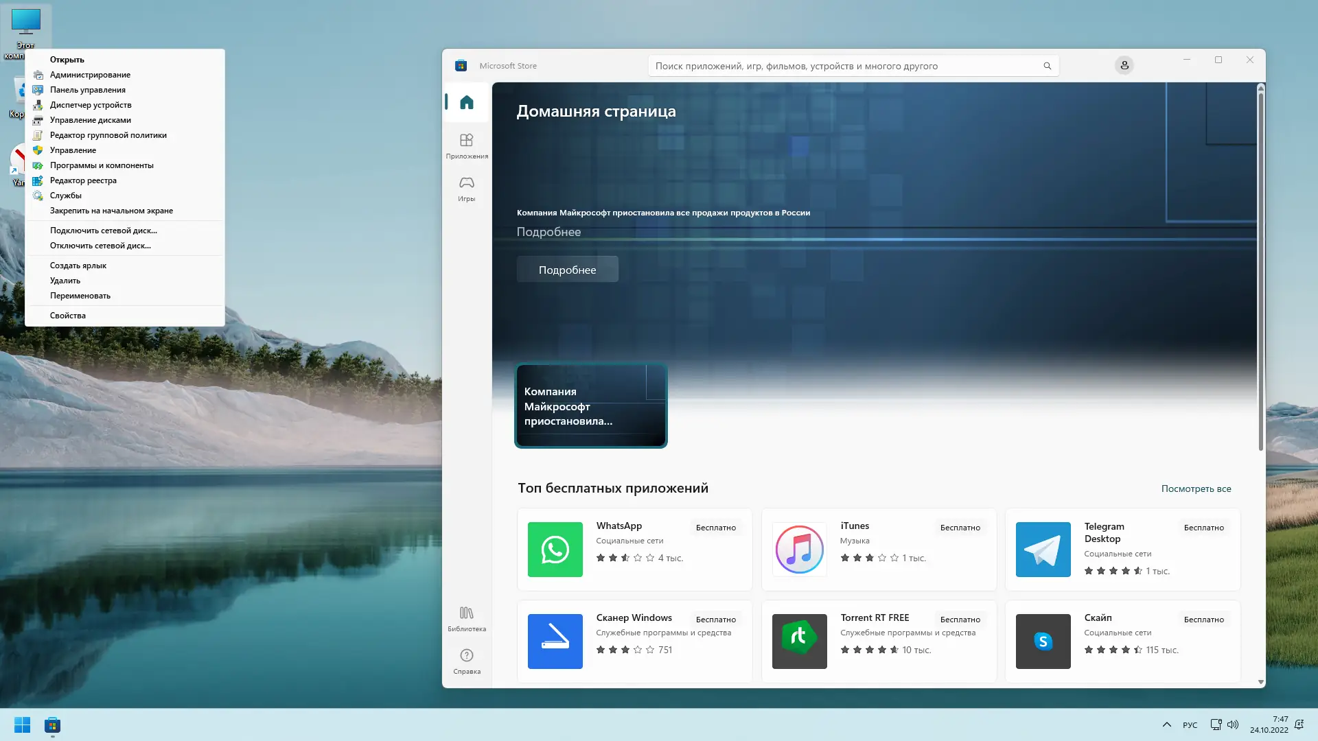 - Отсутствие встроенного магазина Windows и некоторых стандартных приложений.