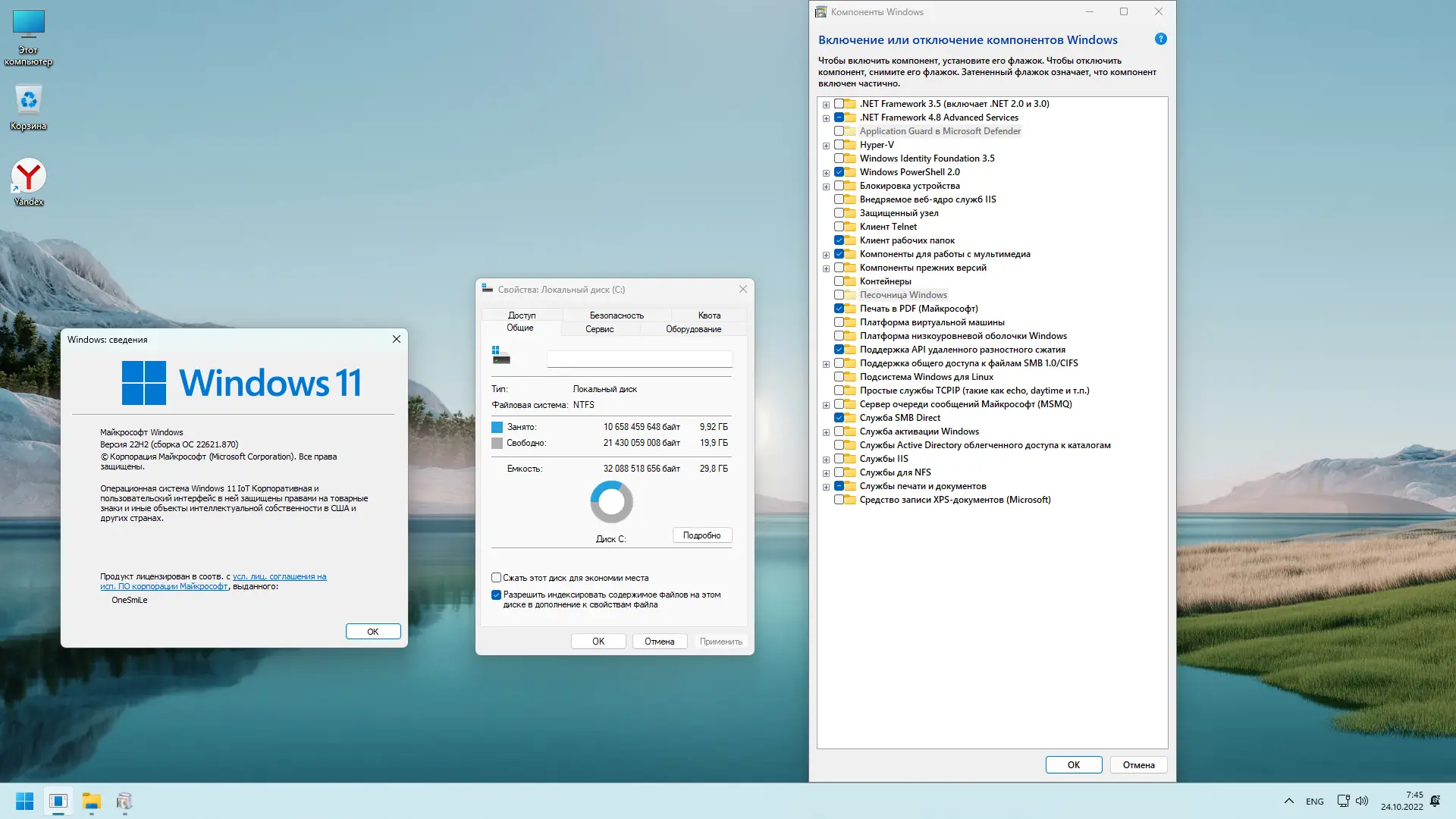 Установлены дополнительные программы, такие как 7-Zip и Яндекс.Браузер, для удобства работы и управления файлами. Для активации системы используется авто-Активация W10DigitalActivation, что делает процесс активации простым и быстрым. В случае необходимости обновления или смены ключа, предусмотрена инструкция по вводом продукта через параметры системы.
