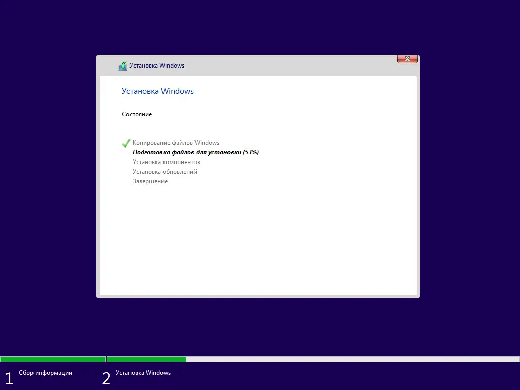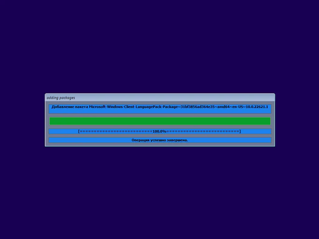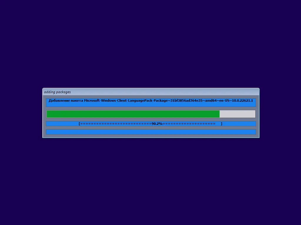 - После завершения установки система автоматически настроит необходимые компоненты, выполнит интеграцию обновлений и установит выбранные программы, согласно настройкам в файле ini.