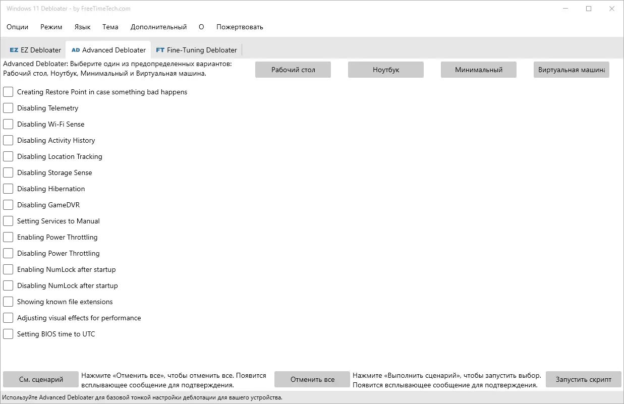 Инсталляция Debloater очень проста и не занимает много времени. Ваша задача — выбрать подходящий вариант и запустить программу. Важно помнить, что использование сценариев требует внимательного отношения к выбранным действиям.