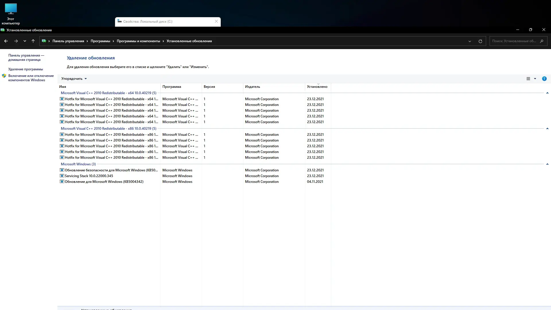- Предустановленные программы, такие как 7-Zip и Visual C++