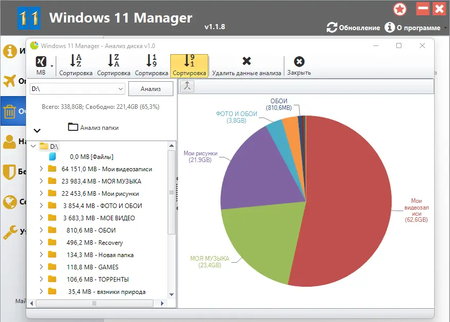 Windows 11 Manager — это универсальная утилита для оптимизации, настройки и восстановления системы на базе Windows 11. Она включает более сорока различных инструментов, направленных на ускорение работы системы, устранение ошибок, повышение стабильности и безопасности. Программа позволяет персонализировать интерфейс и управлять системными функциями, что делает её незаменимым помощником как для опытных пользователей, так и для новичков.
