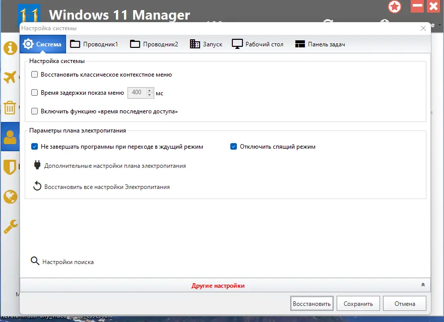 - Создание точек восстановления системы вручную и автоматическое управление ими.