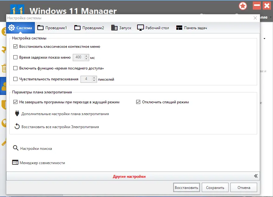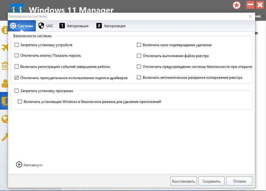 - Создание точек восстановления системы вручную и автоматическое управление ими