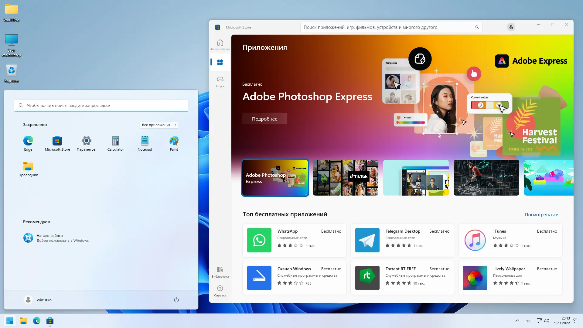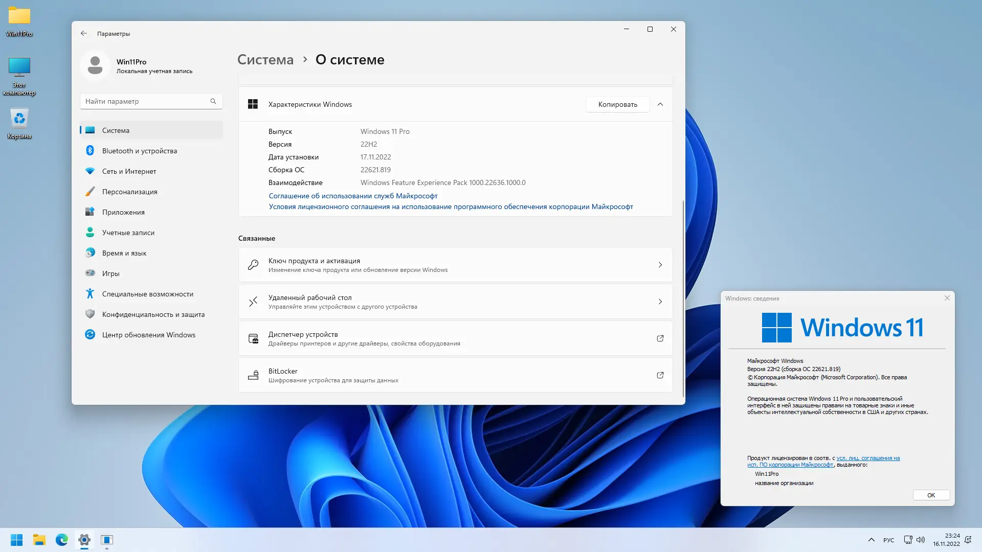 Для корректной работы сборки необходимо соответствовать минимальным системным требованиям Windows Pro 22H2.