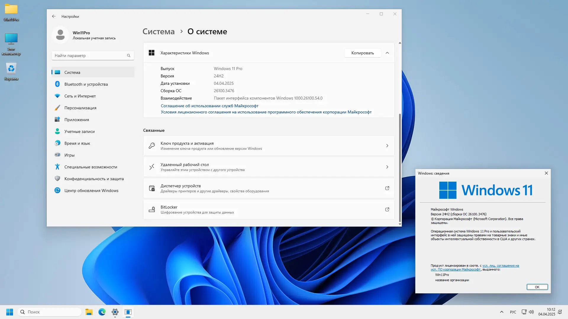 Операционная система | Чистая установка Windows 11 Pro 24H2 x64 |