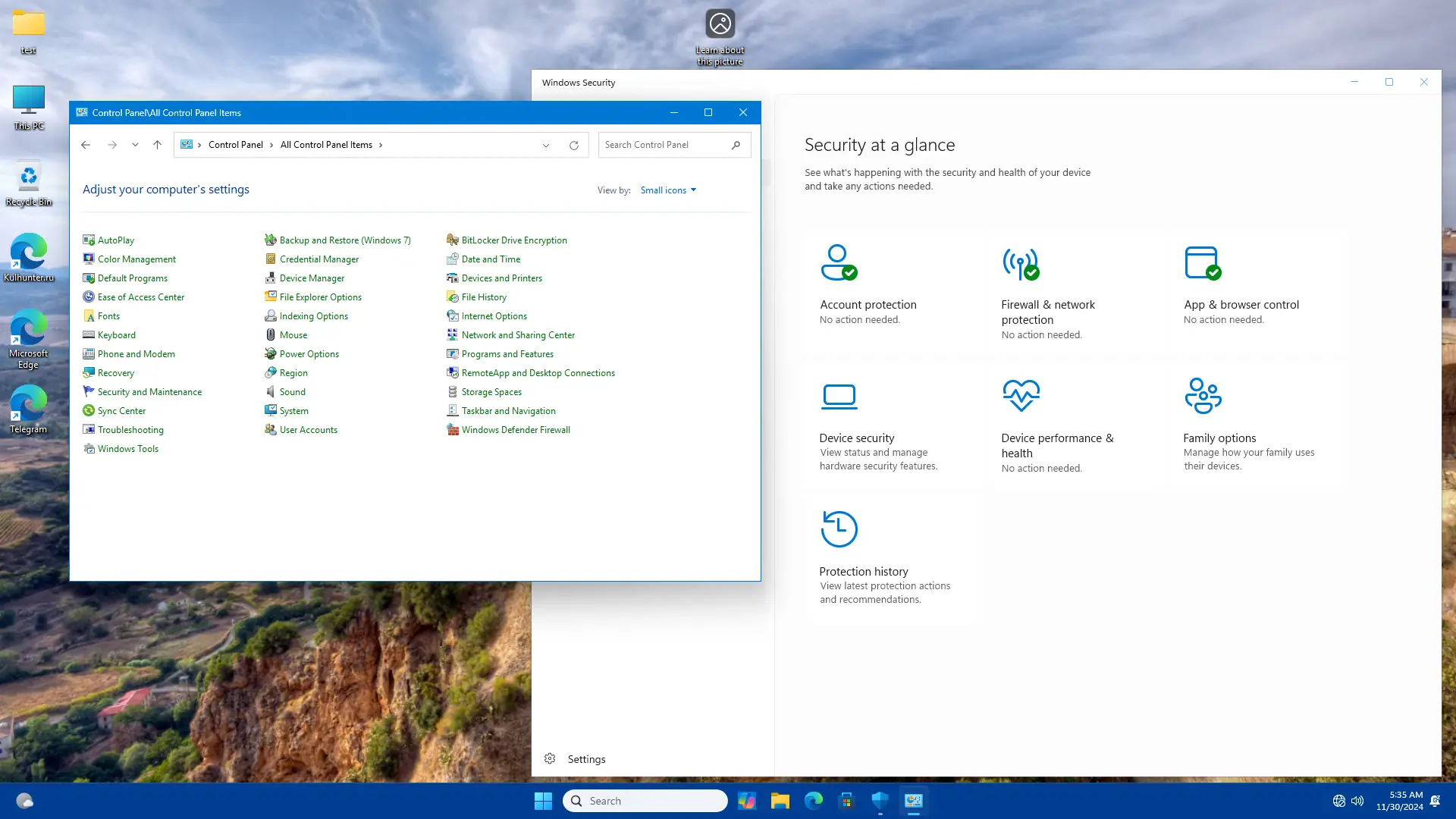 - Настроена подробная работа проводника: показ расширений, скрытие папок, сворачивание ленты, отображение полного пути.
