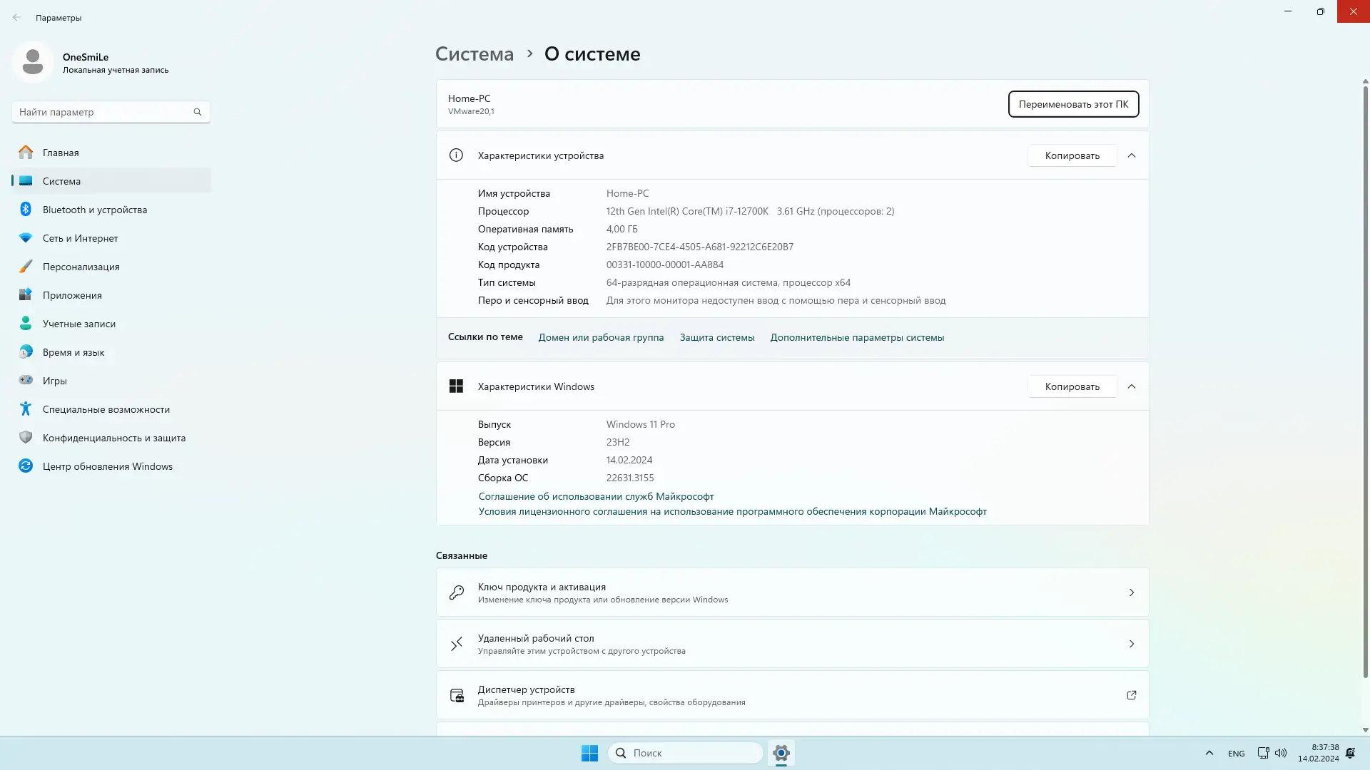 - При необходимости введите ключ продукта или активируйте систему после установки через стандартные параметры.