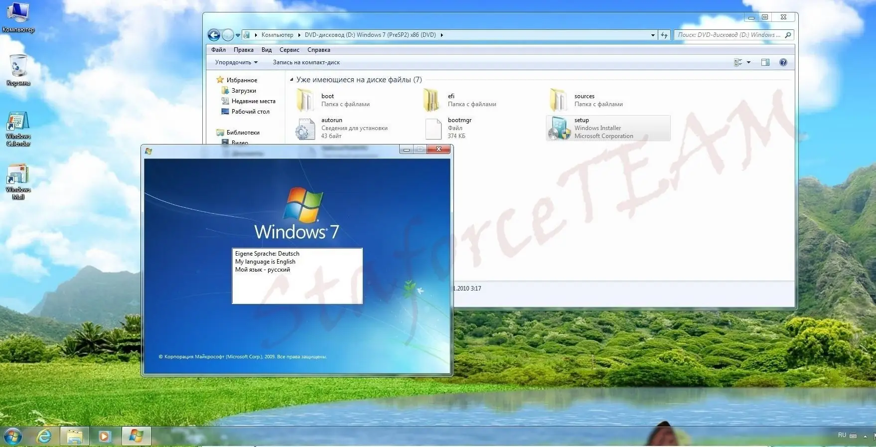 Также система включает оригинальные тематические оформления от Microsoft, а интерфейс поддерживает три языка (английский, немецкий, русский), что обеспечивает комфортное использование для пользователей разных стран. Стоит отметить, что все обновления были официально интегрированы, а устаревшие темы были удалены для повышения безопасности и производительности системы.