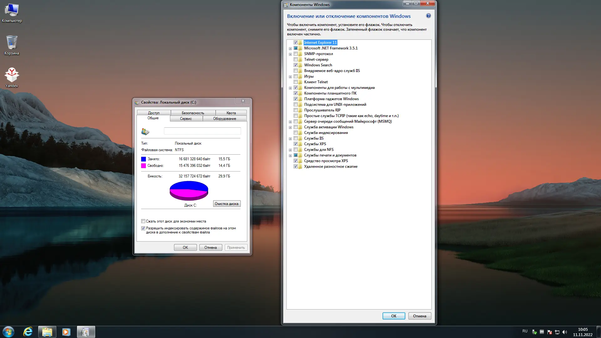 - Оптимизация работы за счёт отключения ненужных служб и удаления ненужных компонентов