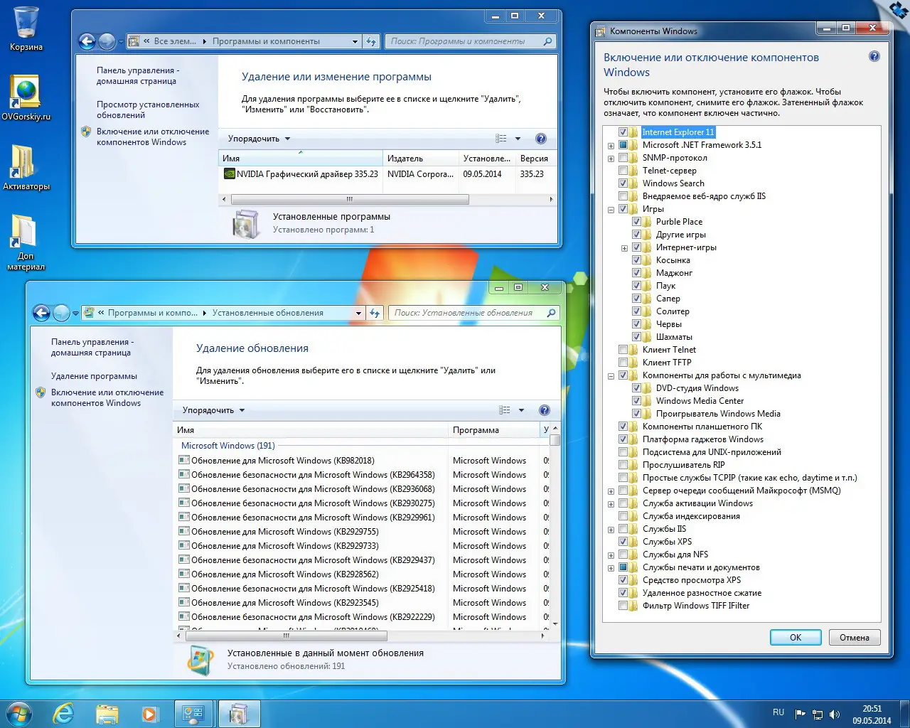 - Интеграция последних актуальных обновлений по май 2014 года и Internet Explorer 11 RU.
