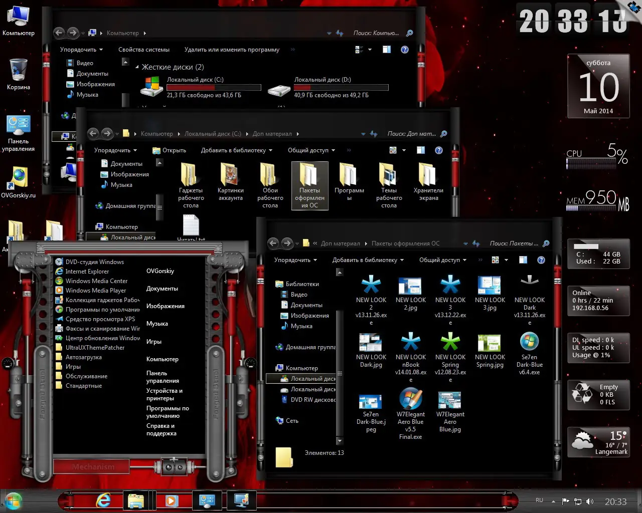 Дополнительный материал после установки включает папки с активаторами, программами, гаджетами, темами, обоями, картинками аккаунтов и пакетами оформления, что предоставляет расширенные возможности для персонализации системы.