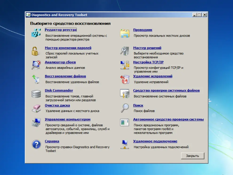- Наличие программ для диагностики оборудования, сброса паролей и восстановления системы