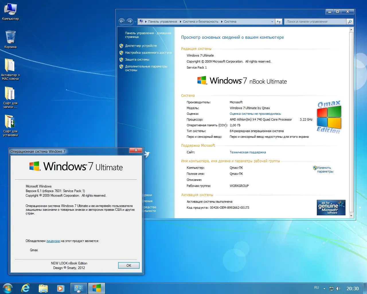 Дополнительно | Образ записи на DVD или флешку от 8 ГБ, отключённый UAC и антивирус (при установке) |